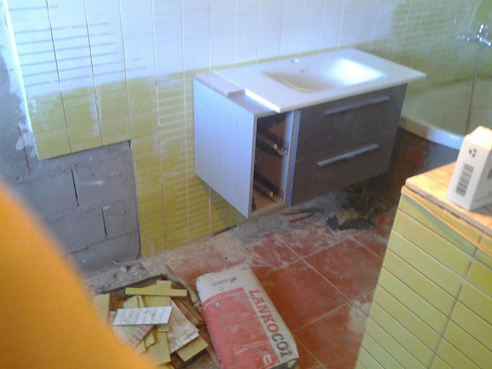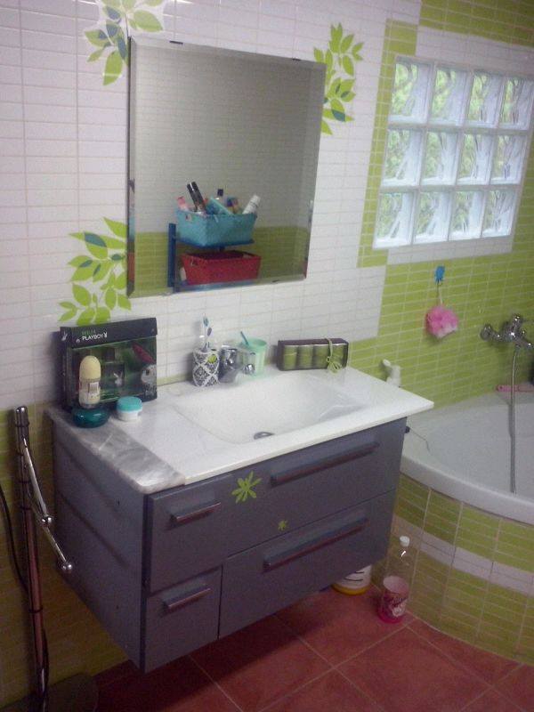 remodelación en cuarto de baño, con colocación de mueble y espejo